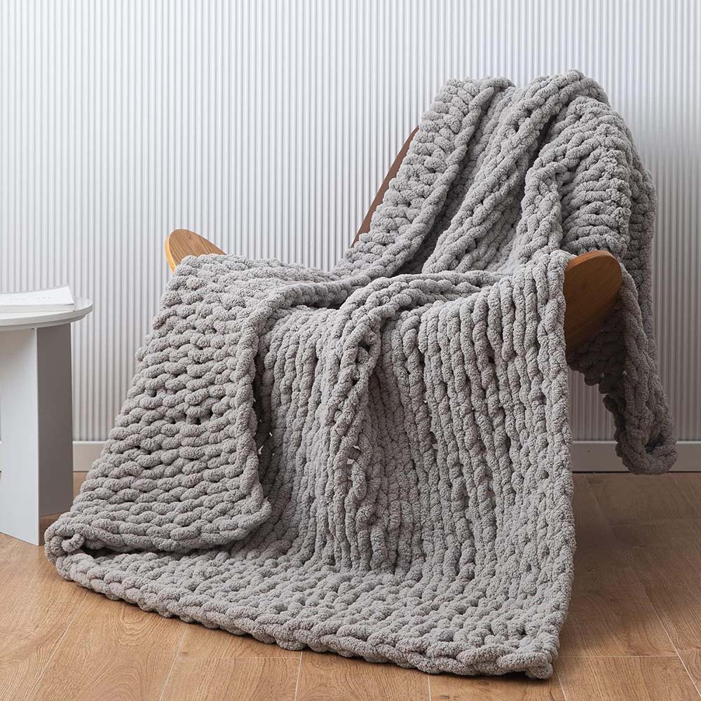 Clisil Handmade Grey Chunky Knit Blanket Throw, Soft Chenille Yarn Throw Blanket 50x60 inch